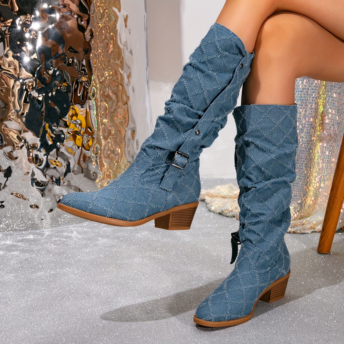 Step into timeless western charm with these women's vintage slip-on boots. Designed for all-season wear, they feature a chunky block mid heel for confident style, a non-slip rubber sole for secure steps, and a fabric upper with comfortable man-made linings—perfect for everyday, office, or party looks.