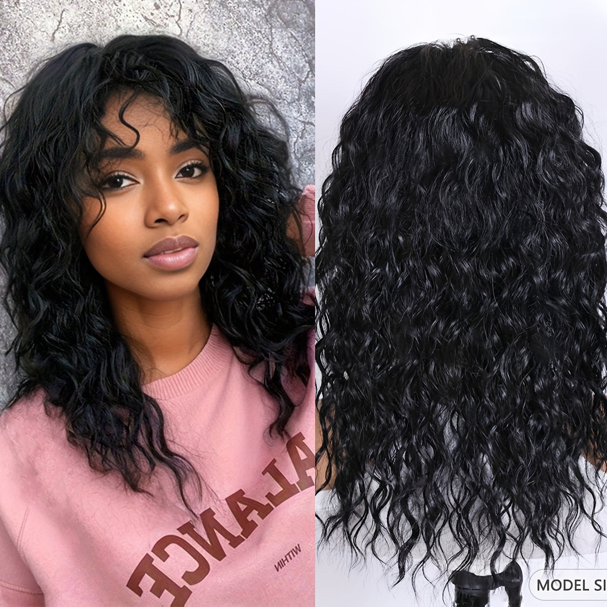 Effortless glamour with everyday comfort. This 18-inch (45 cm) long black curly wig with bangs offers a natural, full-bodied look ideal for daily wear, parties, and festivals. Made from heat-resistant...
