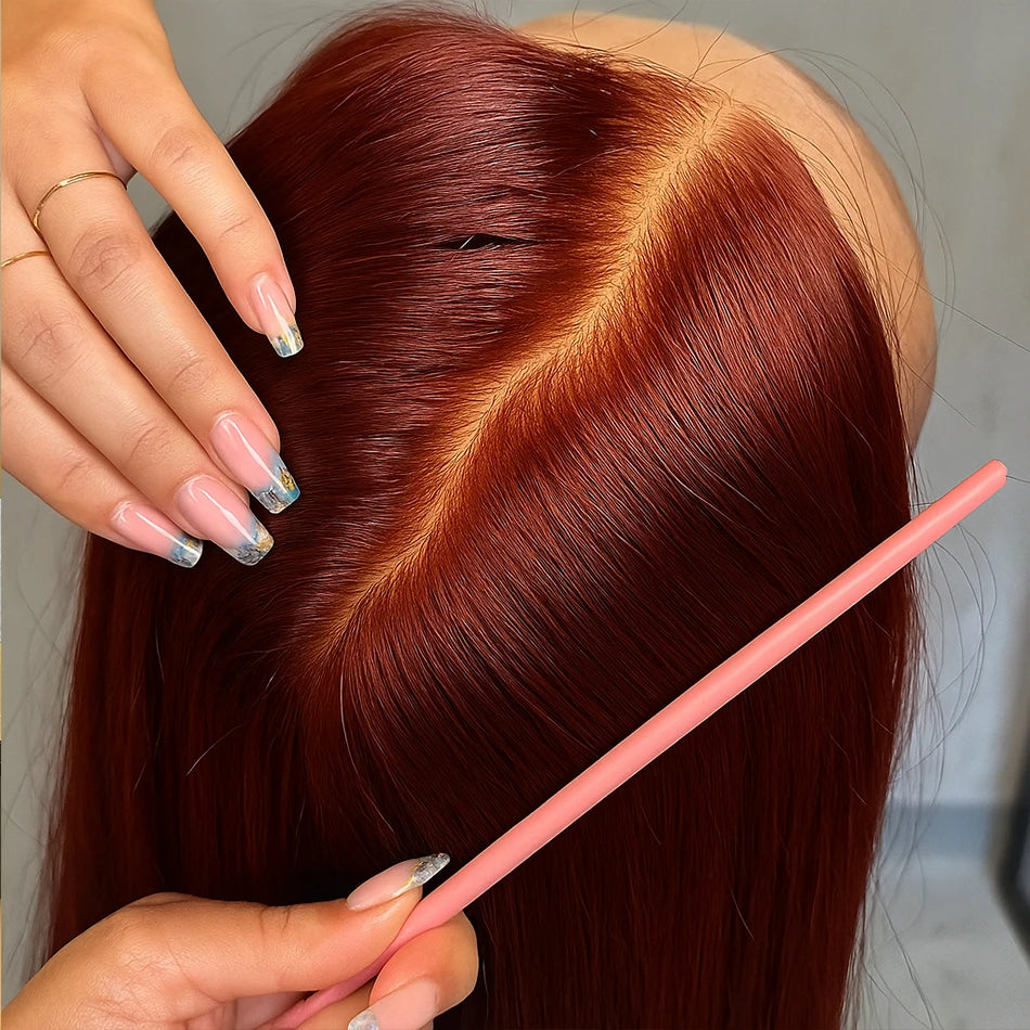 Effortless elegance: This Brazilian reddish brown, bone-straight human hair wig features a 13x4 HD transparent lace frontal for a seamless, natural-looking hairline and long, wearable length of 26+ inches (66+ cm).
