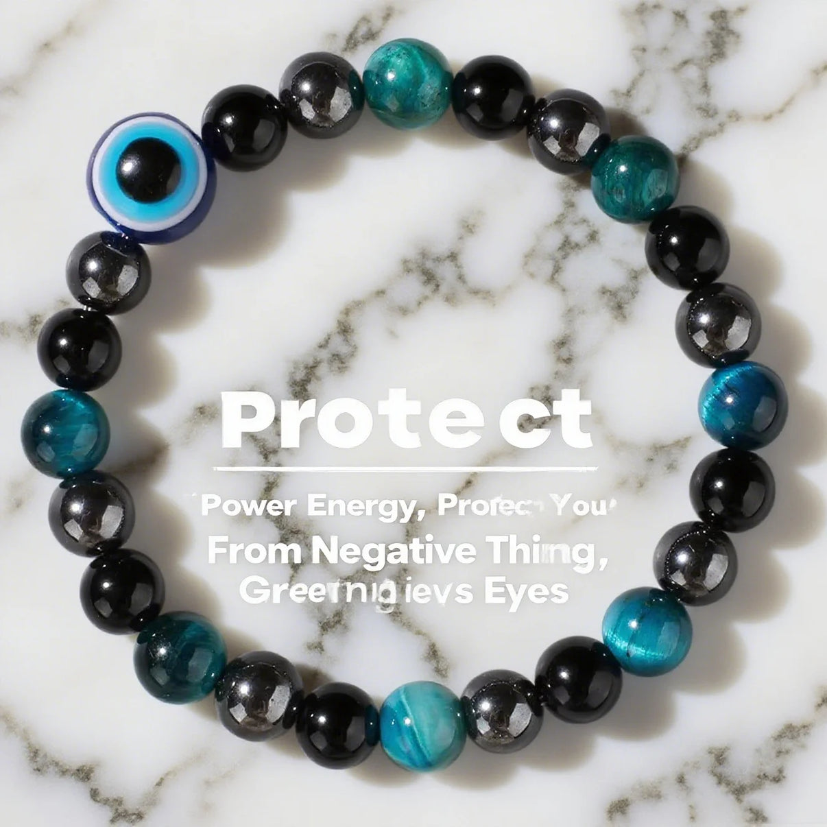 Shielded elegance meets mindful style in this Triple Protection Bracelet. Handmade stretch beads combine blue tiger's eye and black obsidian with an evil eye accent to deliver grounding energy, everyday wearability, and a meaningful gift option.