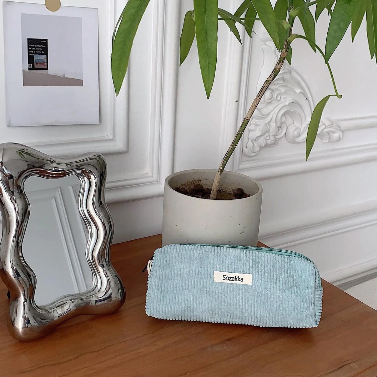 Retro Corduroy Velvet Makeup Pouch – Travel Cosmetic & Pencil Case Organizer for Women