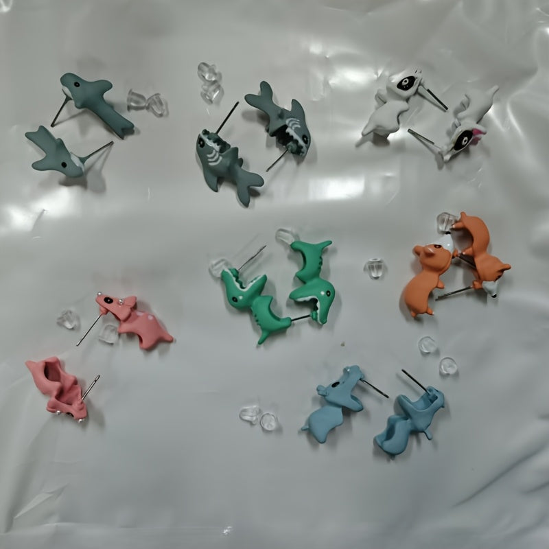 Delightful mini resin earrings in a playful 7-pair set (14 pcs) featuring dinosaur, puppy and whale designs. Lightweight and eye-catching, these clay-style stud earrings with alloy posts make perfect everyday accessories, party accents, or fun gift sets for kids, teens and women who love cute animal jewelry.