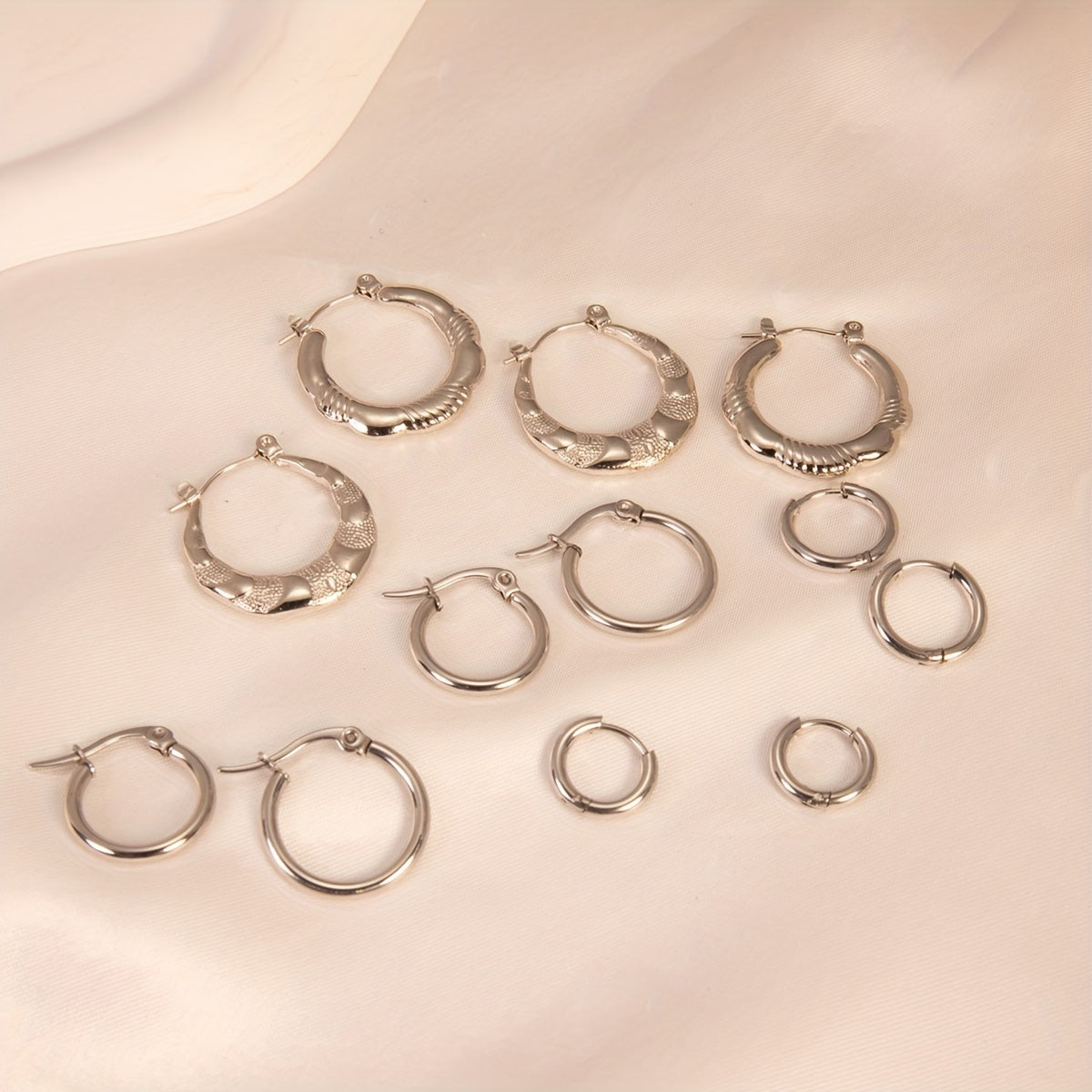 Timeless elegance in a practical 6-piece set: these 316L stainless steel earrings feature an 18K gold-plated finish for long-lasting shine and comfortable daily wear. Perfect for everyday looks or gifting, they combine durability with minimalist style for women and teens over 15.