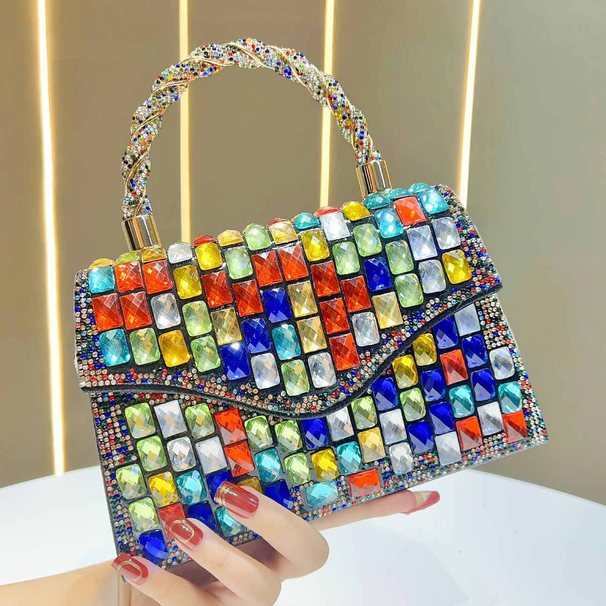Stunning and compact, this gold rhinestone crossbody evening bag elevates formal looks with sparkling detail and a detachable strap for versatile wear. Ideal for weddings, parties, and special events, it...