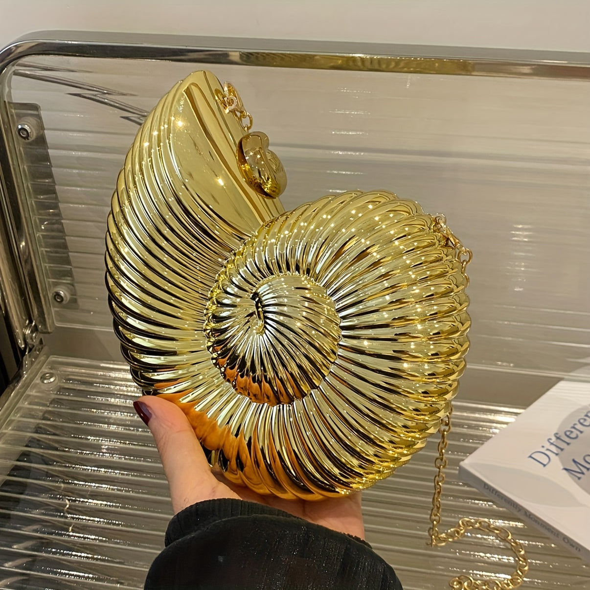 Women's Golden Conch Shell Crossbody Bag - Spiral Shell Clutch with Detachable Strap & Gold Hardware, Small Minimalist Purse