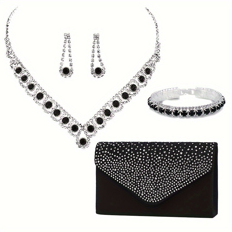 Set Contents: Clutch, Adjustable Rhinestone Earrings, Necklace, Bracelet (4 pieces)