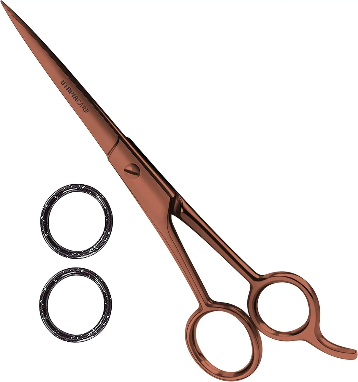 Ergonomic features include a comfortable finger rest and non-slip handles with a removable rubber ring for improved grip and reduced hand fatigue—ideal for professional stylists and home use. Lightweight yet sturdy, the scissors are safe for use on adults and children.