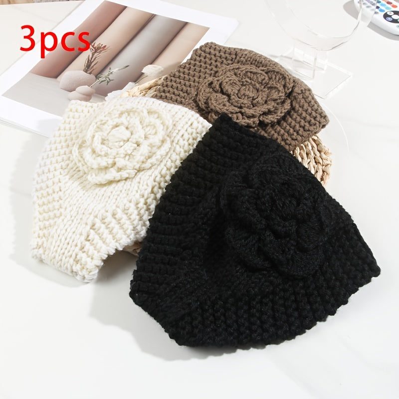 Cozy and chic: Soft knit floral headbands that provide gentle warmth and a stylish touch for everyday wear or holiday occasions. Available in 2-pack or 3-pack options, these versatile hairbands are perfect for women, teens, and girls and make thoughtful gifts for Christmas, Thanksgiving, and Valentine's Day.