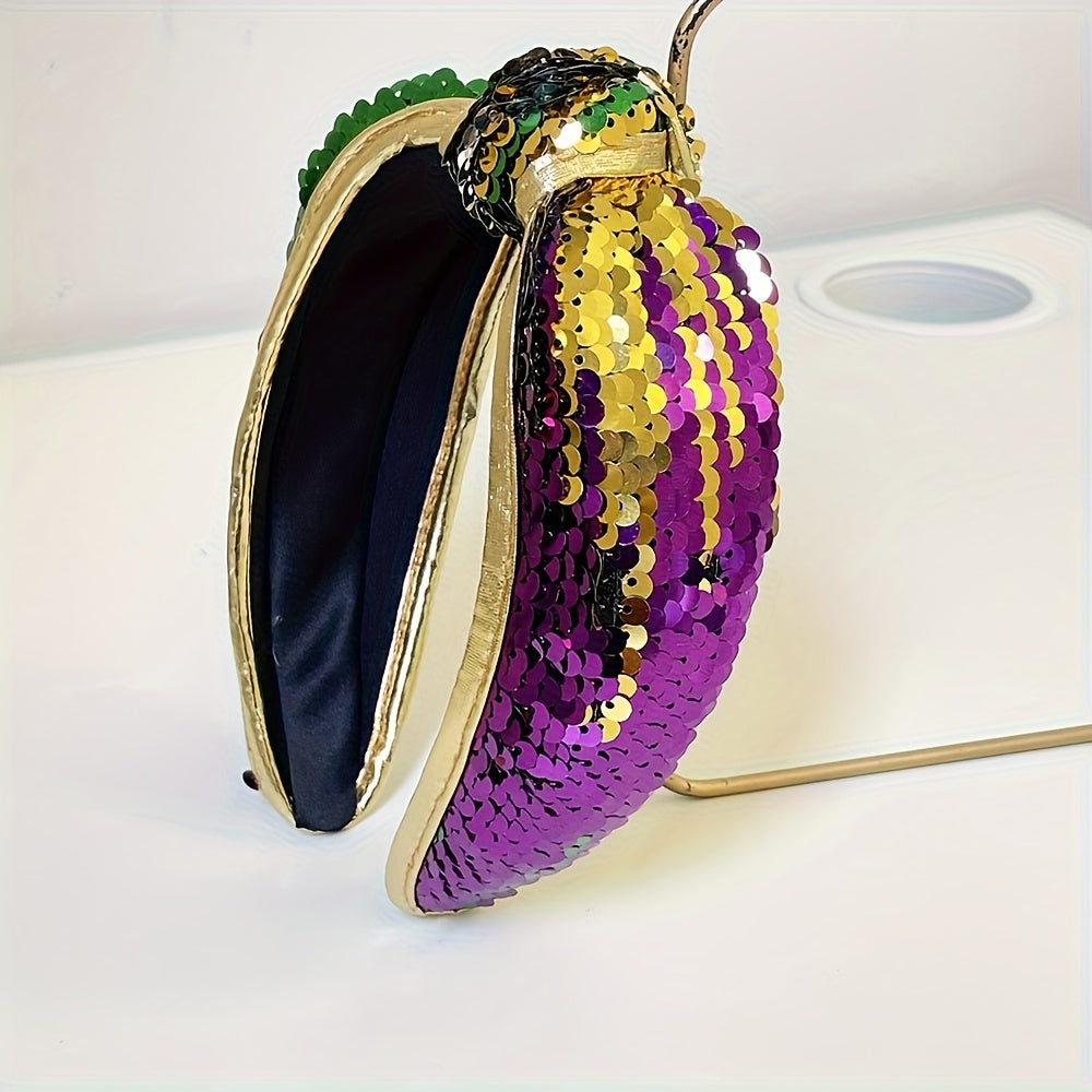 Dazzle at every celebration with this sequin knot headband — shimmering purple, green and yellow tones with rhinestone accents for an elegant, festive look. Perfect for carnivals, parties, holidays and as a thoughtful gift for women who love bold, glamorous accessories.