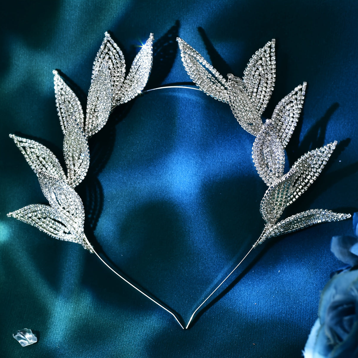 Radiant and timeless, this vintage-inspired bridal headband features sparkling rhinestones arranged in a luxurious leaf design on durable resin—perfect for brides, bridesmaids, and special occasions. Adds elegant sparkle and a refined finishing touch to wedding hairstyles and formal looks.