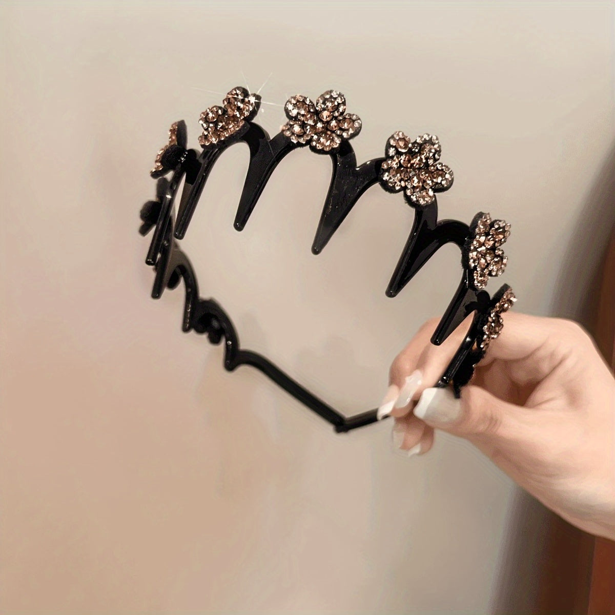Sparkle with effortless style — this elegant rhinestone flower headband doubles as a high ponytail organizer and face wash clip, featuring black and clear beads on a secure plastic band for comfortable, versatile wear at parties, proms, weddings and everyday looks.