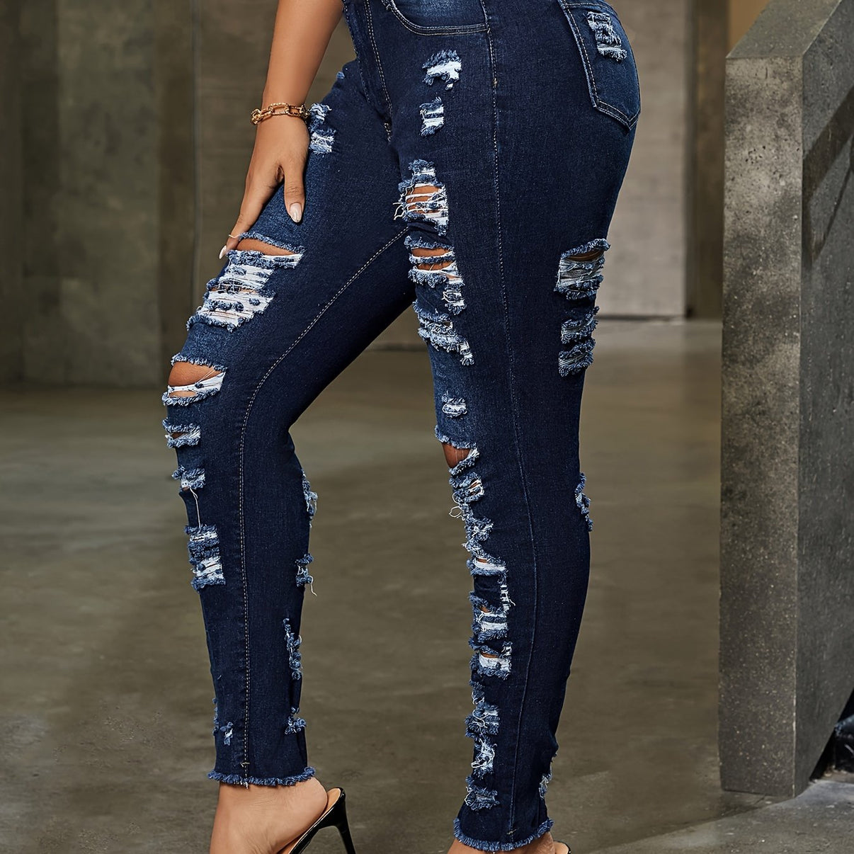 Women's High-Stretch Skinny Jeans Mid-Rise Distressed Geometric Ripped Semi-Sheer Denim