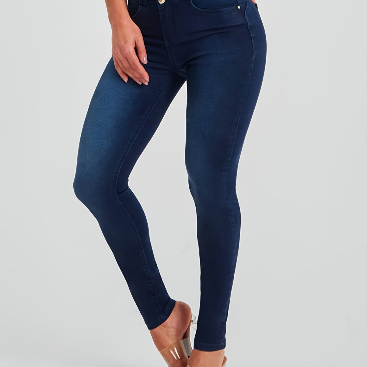 Women's High-Waisted Stretch Skinny Jeans, High-Rise Slim Fit Denim with Button Detail, Long Length