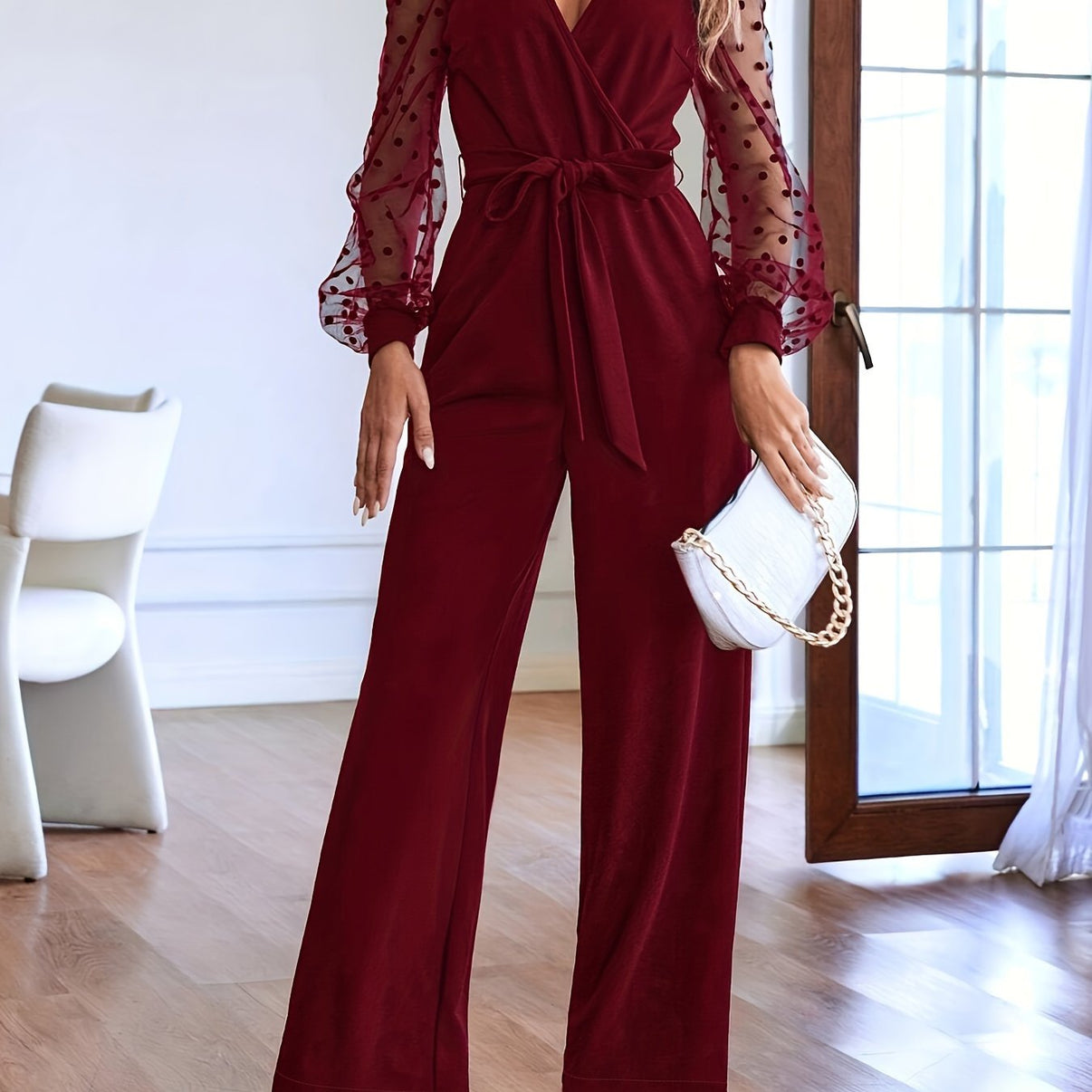 Polka Dot V-Neck Long Sleeve Jumpsuit for Women — Elegant Spring Jumpsuit