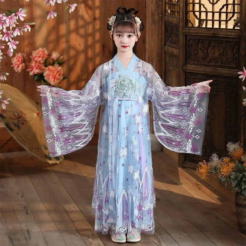 Enchanting Tang-style Hanfu dress designed for baby and toddler girls — a lightweight, polyester summer princess outfit perfect for parties, photos, festivals, and everyday wear. Soft, breathable fabric and a...