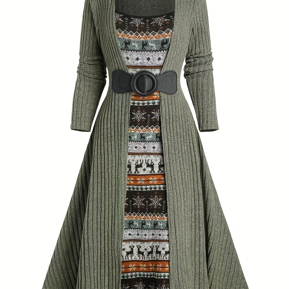 Cozy and refined, this long-sleeve ribbed knit dress features a flattering square neckline and A-line silhouette—ideal for fall and winter commutes, office wear, and layered looks. Specifications: Applicable People: Adult...