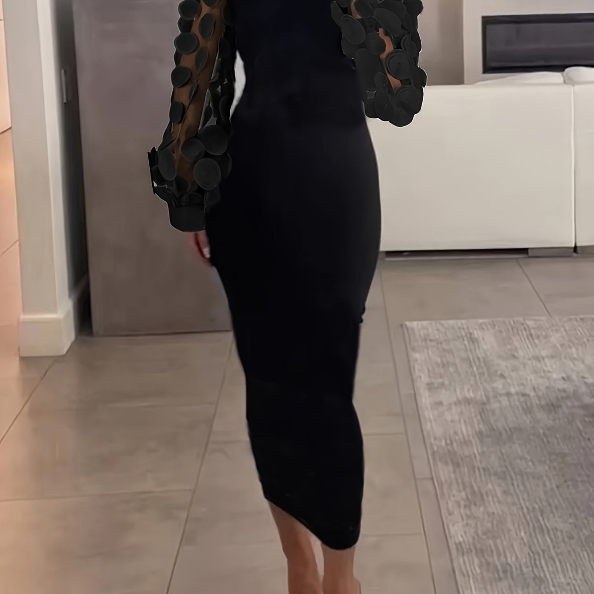 Women's Black Long Sleeve Maxi Dress - Fitted Stretch Knit, Machine Washable, All-Season Party & Office
