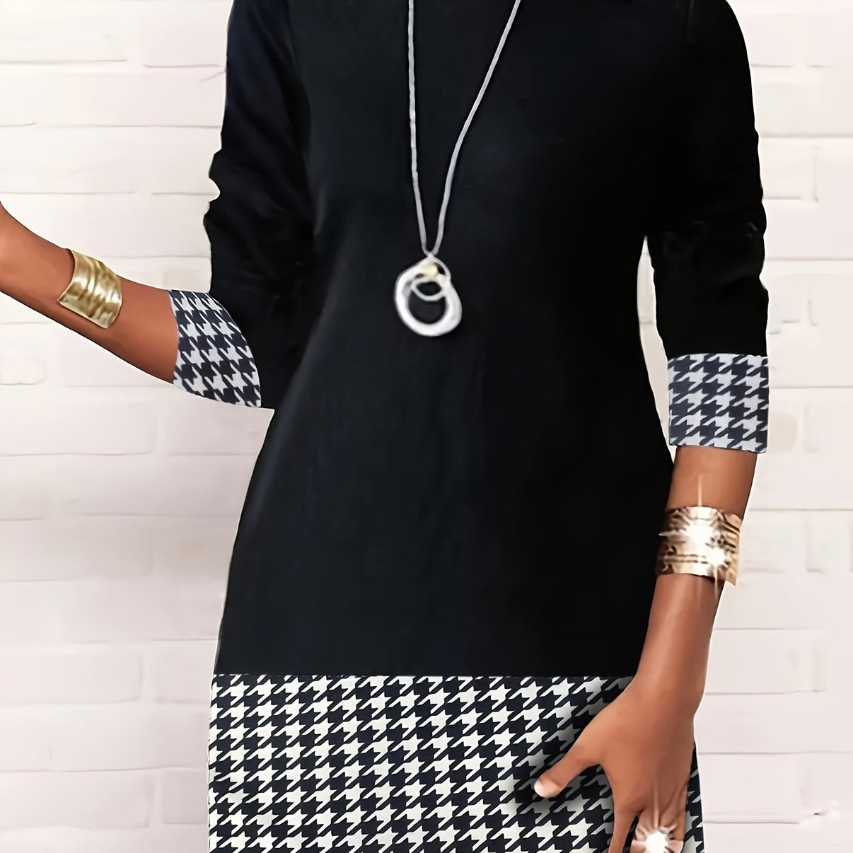 Effortless elegance meets everyday comfort in this women's color block print dress. The long sleeves and round neck offer a timeless silhouette while mid-elastic knit polyester provides stretch and shape retention. Machine washable for easy care, this versatile piece works for casual days, office looks, and evening outings across all seasons.