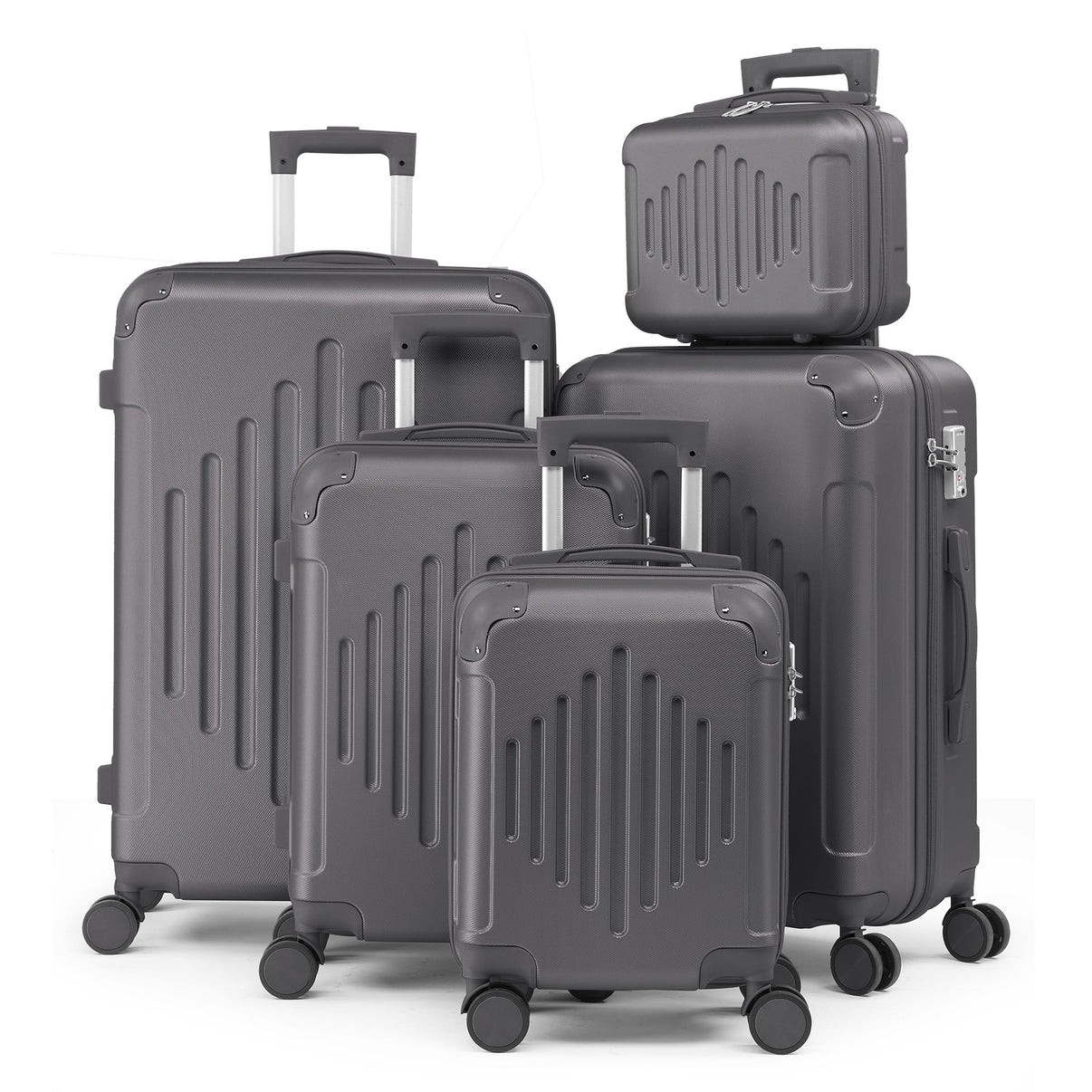 Travel-ready. Durable, lightweight hard shell suitcases built for smooth rolling and secure travel. Available as a single carry-on or a 5-piece set in Black, Pink, or Blue, these spinner suitcases feature reinforced corner protectors, 360° wheels, and a built-in combination TSA lock for easy, worry-free trips.
