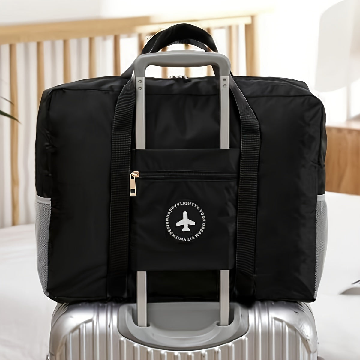Features: Large-capacity design, foldable for compact storage, reinforced handles for handheld use, trolley sleeve for luggage handles, zipper closure