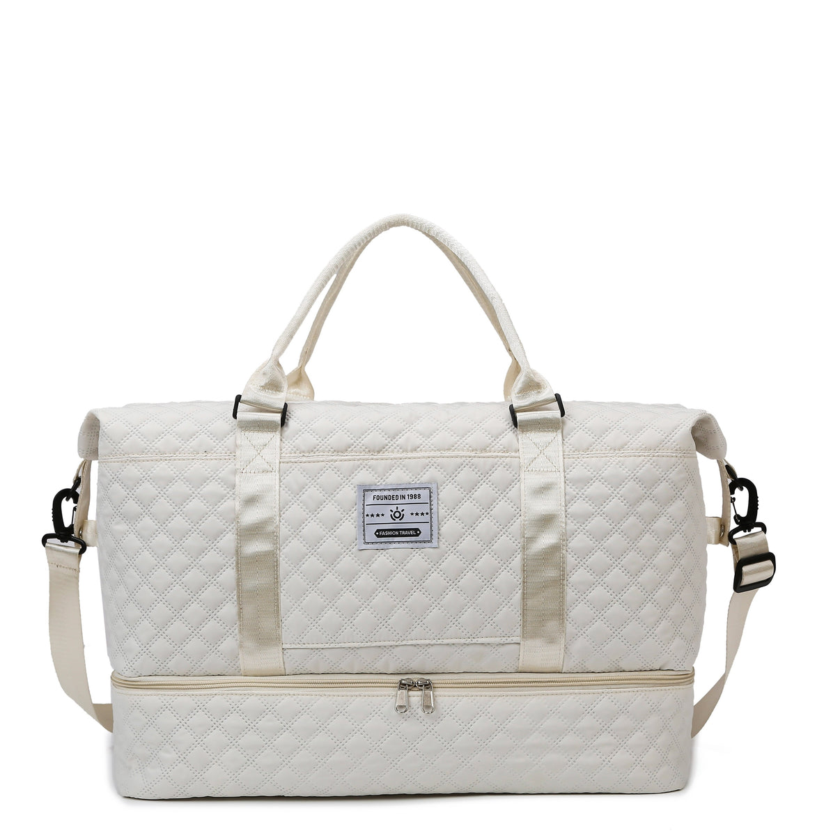 Stylish, durable, and spacious—this quilted checkered duffle bag combines fashion and function for travel, gym, yoga, camping, and weekend getaways. Removable strap and secure zipper closure make packing and carrying essentials effortless.
