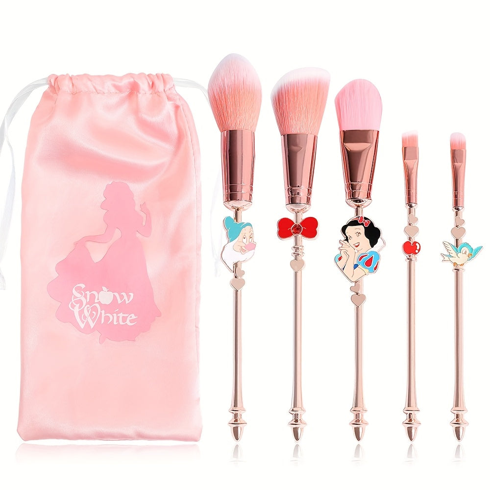 Princess Makeup Brush Set for Girls - Snow White & Little Mermaid Inspired Pink & Blue Soft Bristle Brushes
