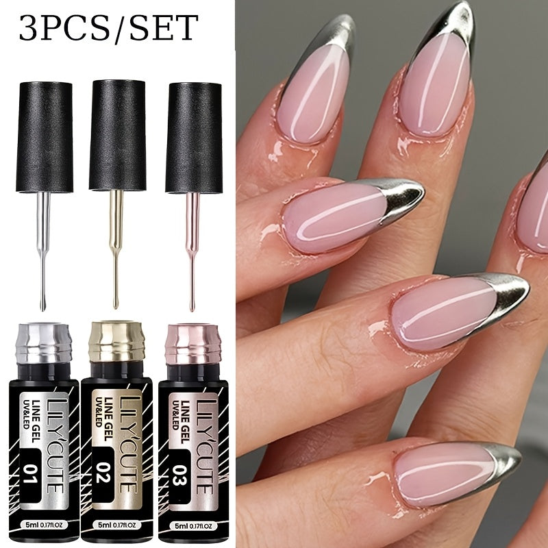 3-Pack (3 x 5ml / 0.17 fl oz) Metallic Liner Gel Nail Polish Set - Mirror Chrome Striping Nail Art Gel