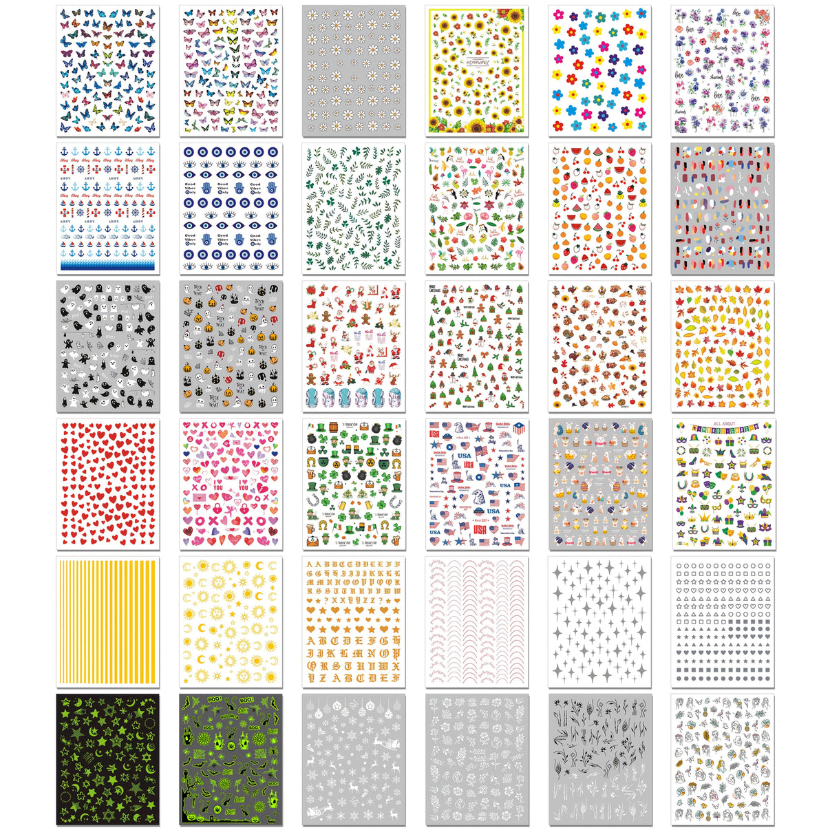 Brighten your manicure for every season with this 36-sheet mixed holiday nail art sticker set. Easy-to-apply, self-adhesive designs include daisies, butterflies, stars and holiday motifs for Fourth of July, Halloween, Christmas and everyday looks — ideal for quick DIY manicures, parties, and special occasions.