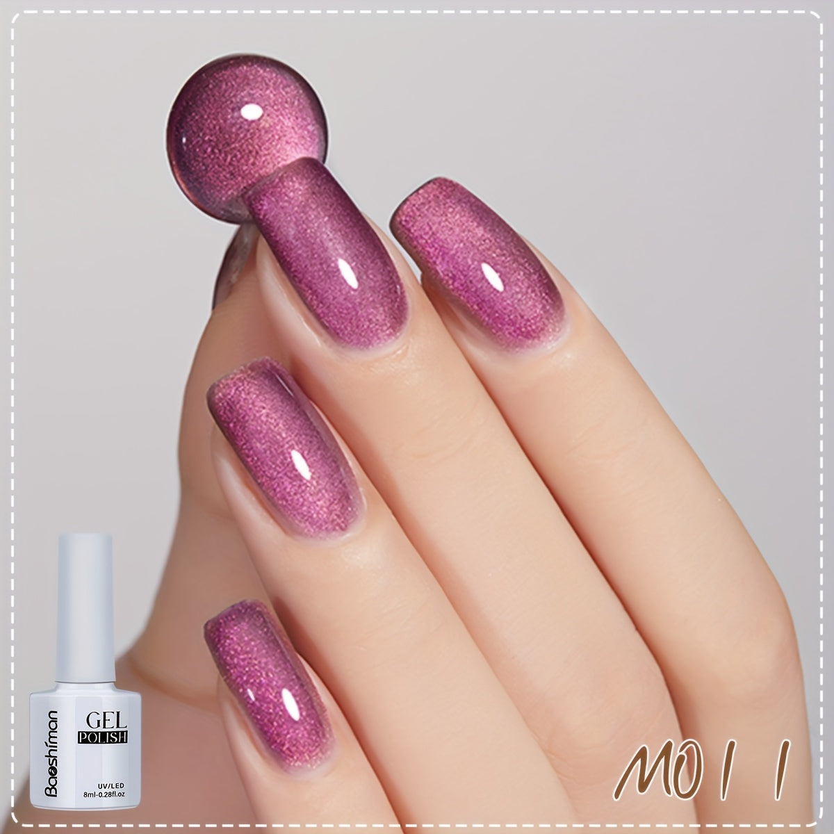 Radiant, mirror-like cat eye gel polish in a 9-color set delivers holographic shimmer and a high-gloss finish for salon-quality DIY manicures. Perfect for home or professional use, this soak-off gel cures with an LED/UV lamp and creates striking cat eye effects when used with a magnet.