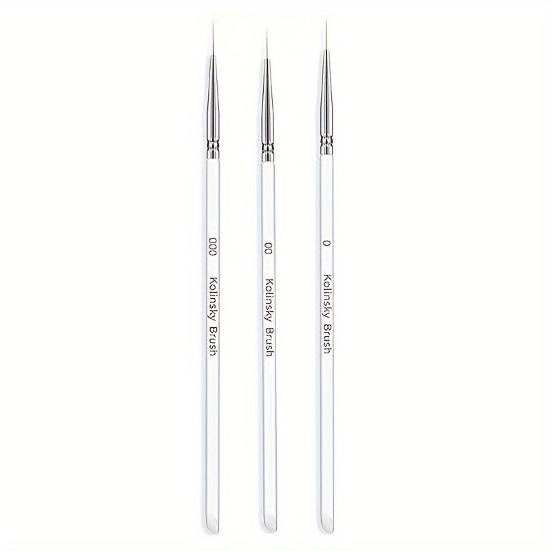 3-Piece Fine Detail Nail Art Brush Set – Precision Ultra-Thin Liner Brushes for 3D Nail Art, French Stripes & Detailing | Ergonomic Acrylic Handles for DIY Manicure