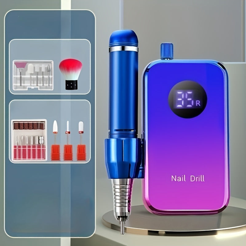 Elevate your at-home manicures with this portable electric nail drill. Rechargeable and USB-powered, it delivers salon-quality shaping, buffing, gel removal, and advanced polishing with a digital display and high-speed motor...