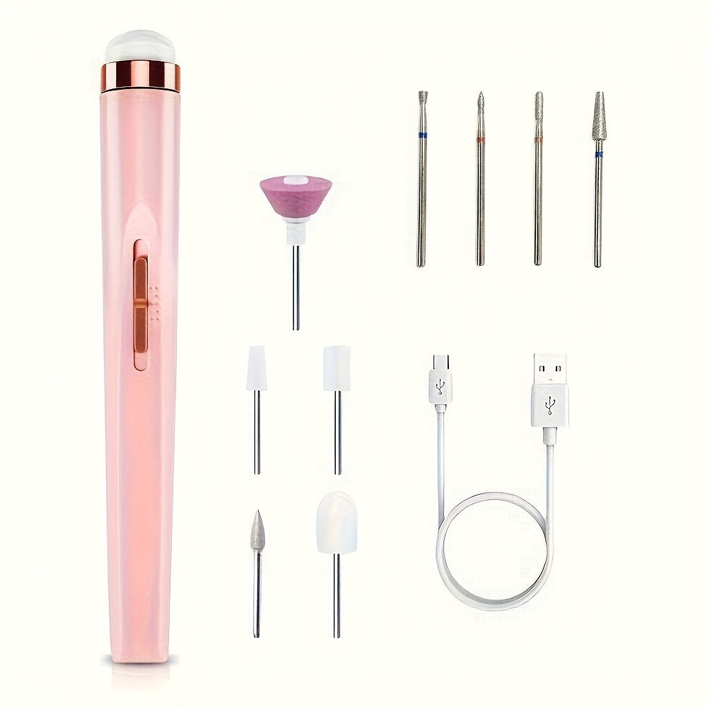 Effortless precision at home — portable electric nail drill designed for professional-quality manicures and nail care. USB rechargeable with a built-in LED light, adjustable speed control, and five interchangeable drill bits for filing, shaping, polishing, and cuticle care.