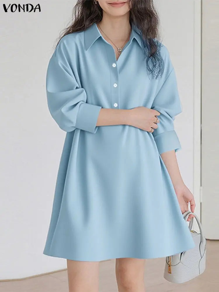 Effortless. A flattering above-knee plus-size shirt dress designed for everyday comfort and versatile style. This loose-fit, long-sleeve lapel dress in solid polyester works all season—wear it solo for casual outings, layer it for cooler days, or style it for work-from-home comfort. Key features include a turn-down collar, relaxed silhouette, and easy-care fabric for low-maintenance dressing.