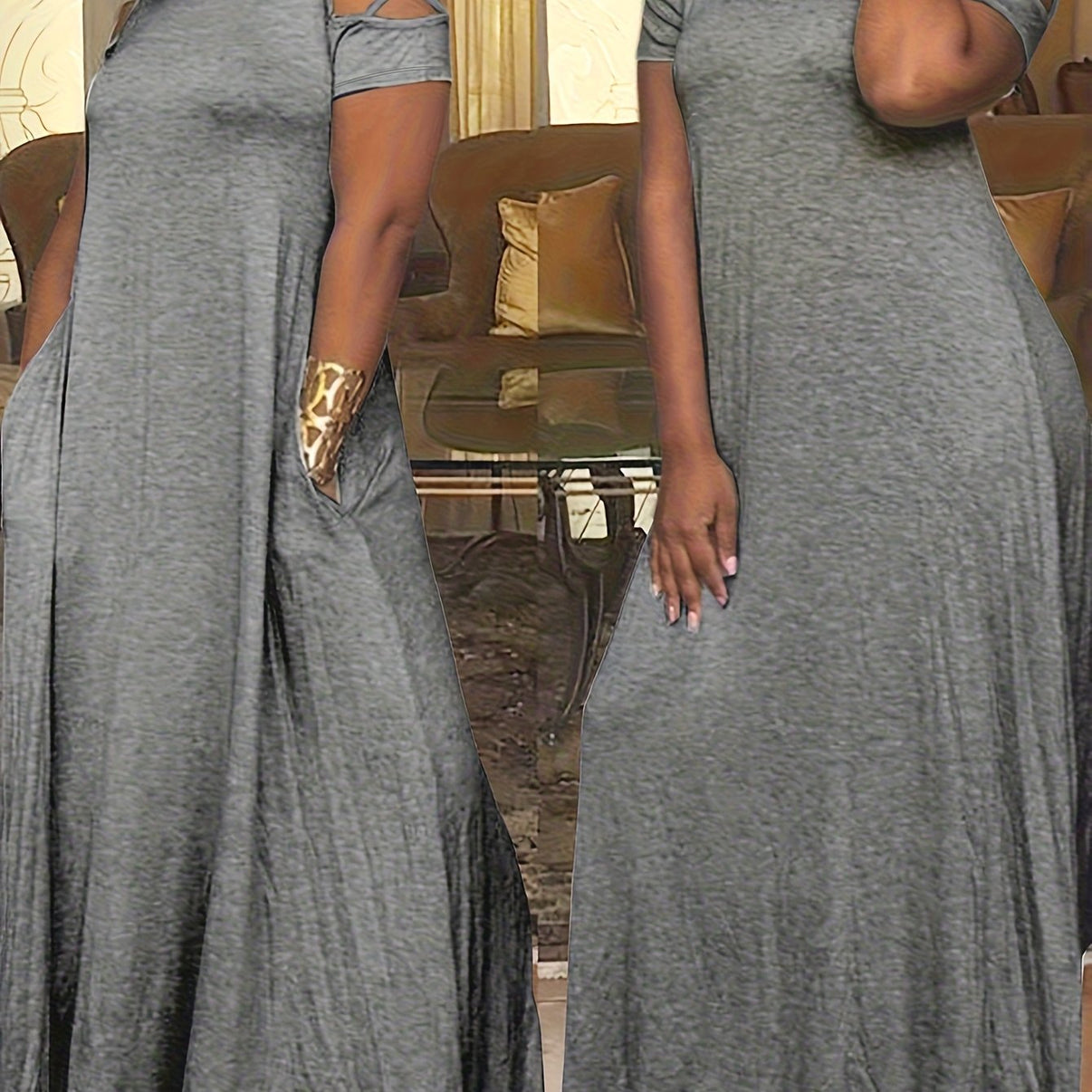 Effortless elegance—this plus size cross-sleeve maxi dress blends a medium-stretch knit with a flattering A-line silhouette and a subtle back split for comfortable movement. Ideal for weekend casuals, summer vacations,...