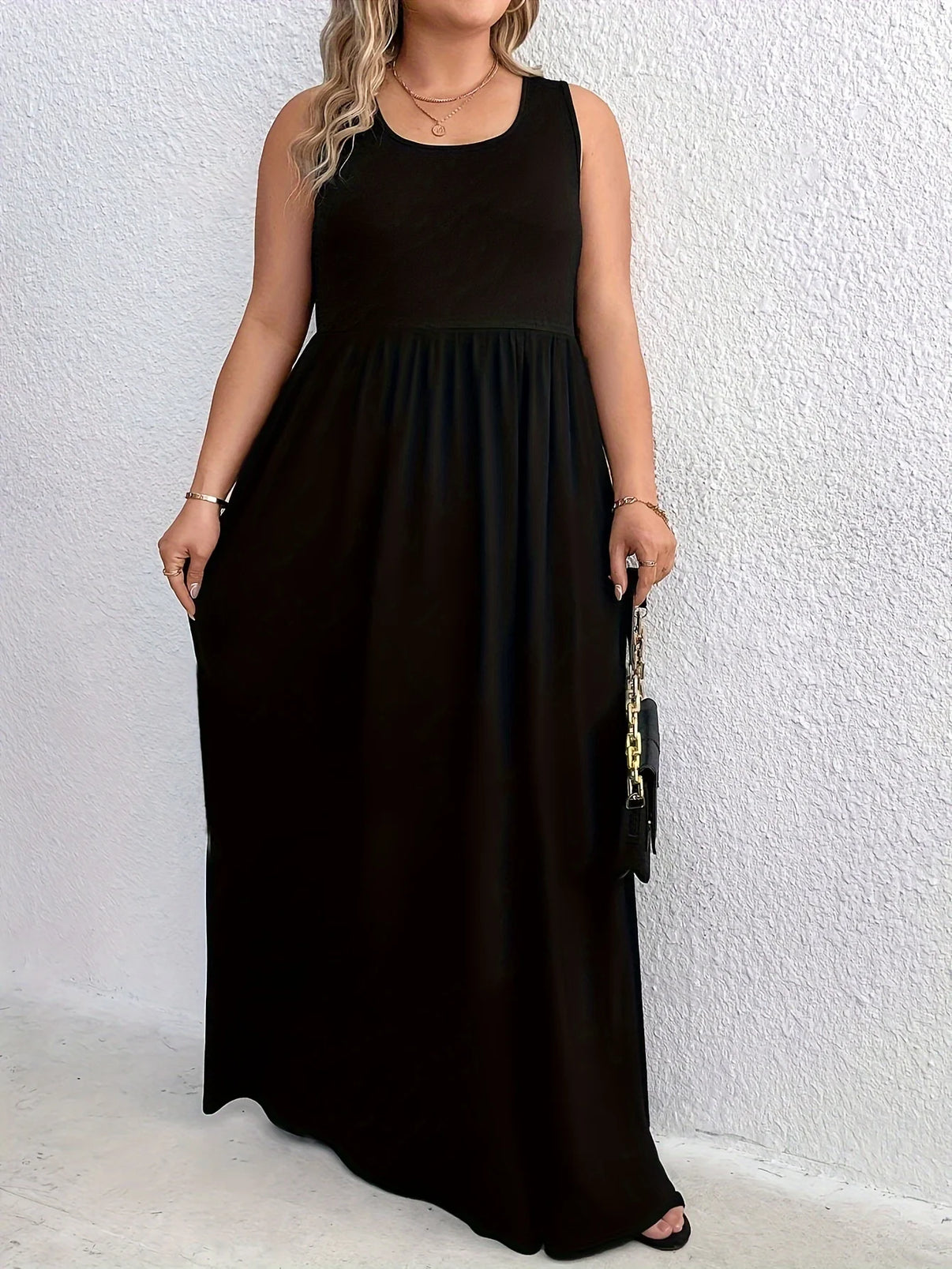 Plus Size Sleeveless Round Neck Tunic Dress 1XL-5XL Casual Knit Ankle-Length Spaghetti Strap