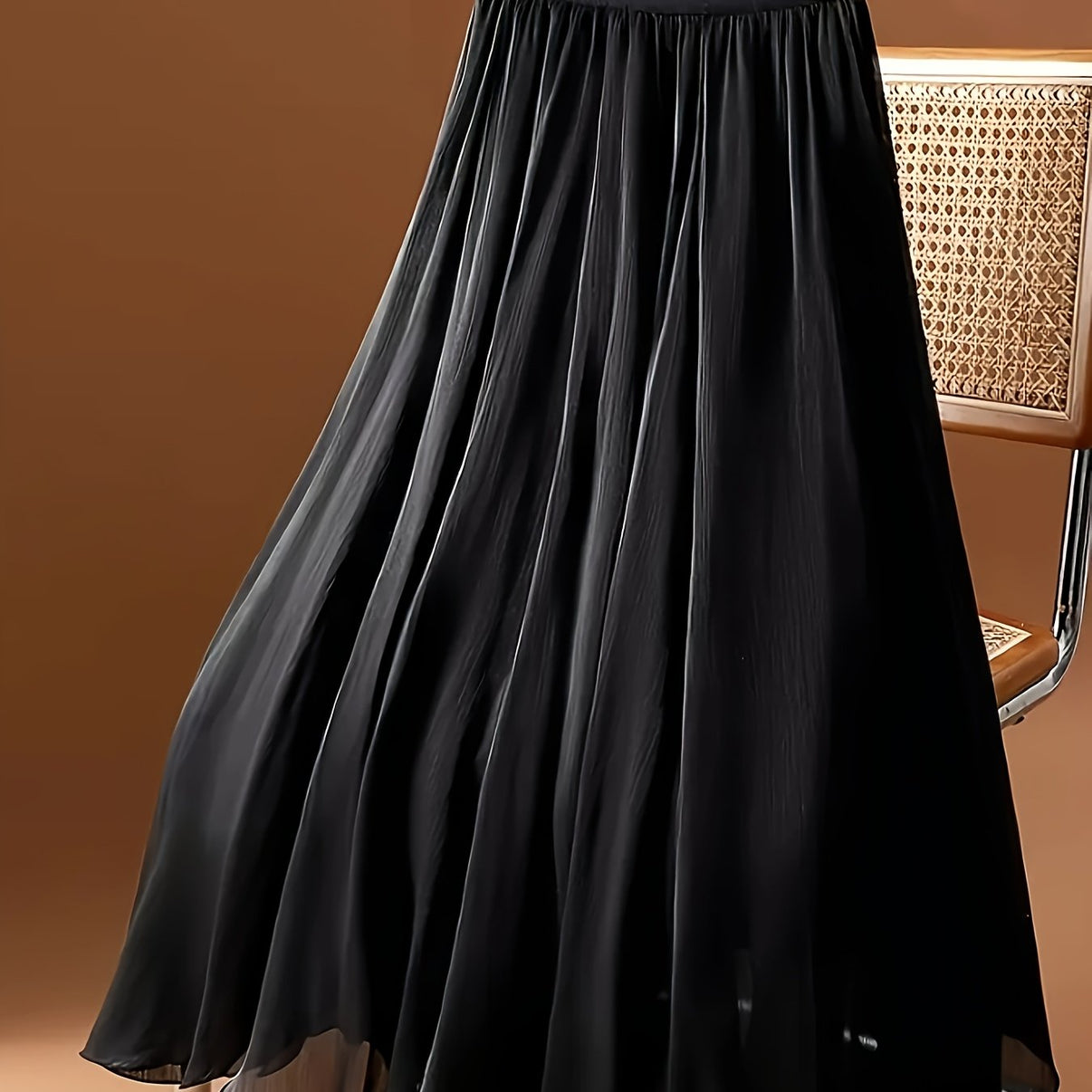 Timeless and effortlessly elegant, this black pleated maxi skirt features sculpted pleats and a flowing maxi length for versatile wear — from casual days to dressy evenings. Woven 100% polyester keeps the shape crisp and easy to care for while the straight silhouette with a loose fit flatters multiple body types.
