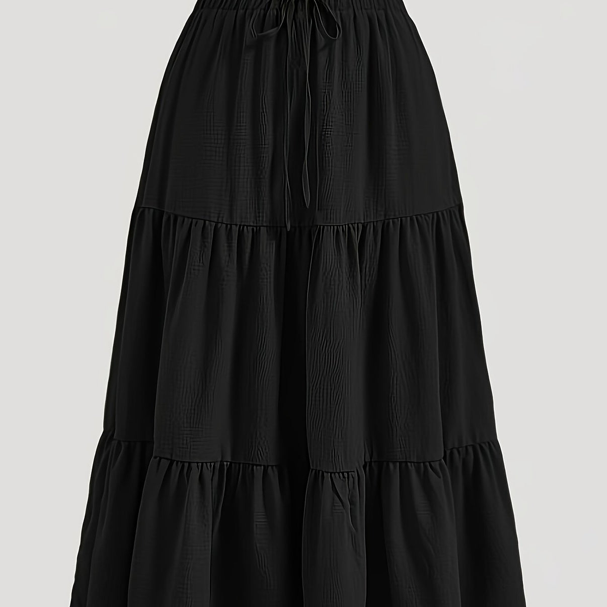 Plus Size Ruched Tiered Midi Skirt – Casual Elastic Waist Flared Skirt for Spring Summer