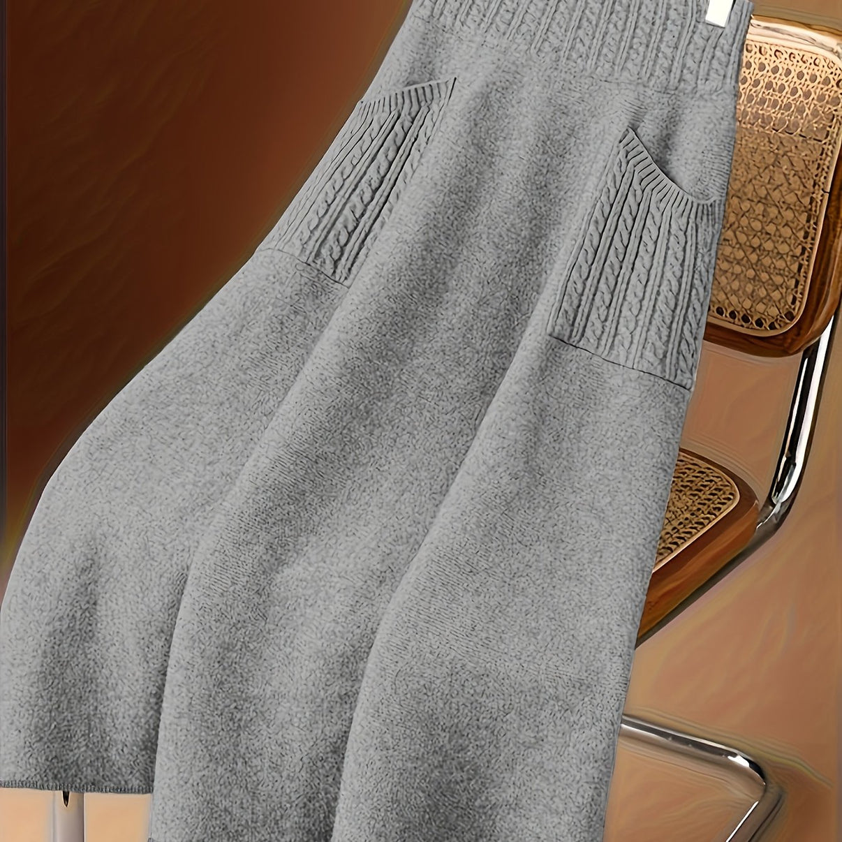 Plus Size Solid Ribbed Knit A-Line Midi Skirt with Twist Detail and Pockets, Casual Sweater Skirt