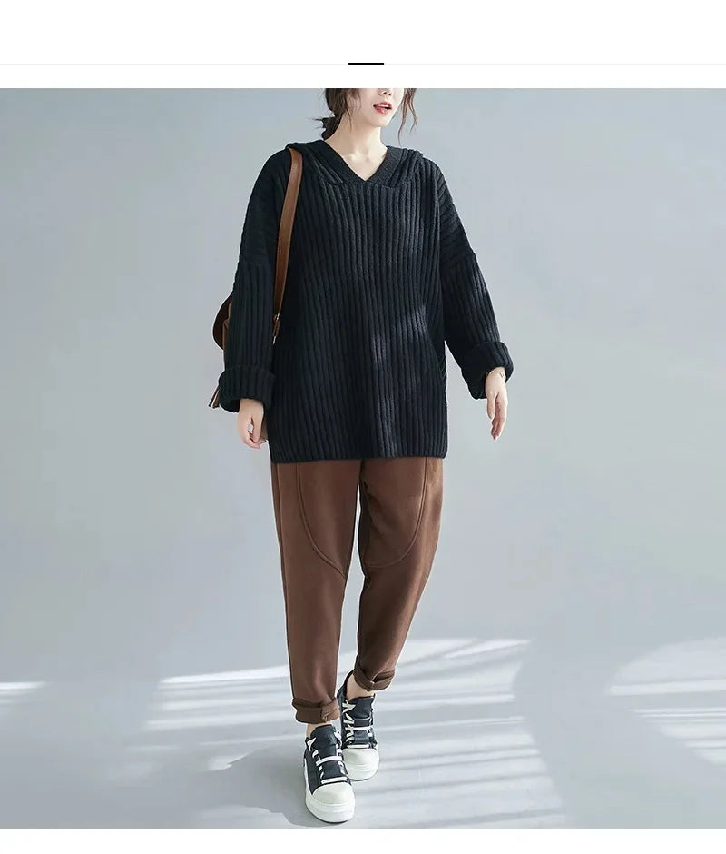 Cozy and chic, this plus size longline hooded chunky knit sweater delivers winter-ready warmth and relaxed Korean-inspired style. Made from soft viscose with a thickened construction, it offers comfortable coverage, an oversized loose fit, and easy layering for chilly days.