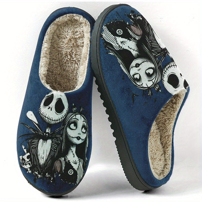Cozy up in playful comfort with these Jack Skellington plush slippers—unisex indoor/outdoor footwear ideal for fall and winter. Soft fabric lining and a cushioned fabric insole keep feet warm, while the durable TPR non-slip sole supports light outdoor use. Fun striped, cartoon and animal print options make them perfect for lounging, camping, holiday gifts, or everyday casual wear.