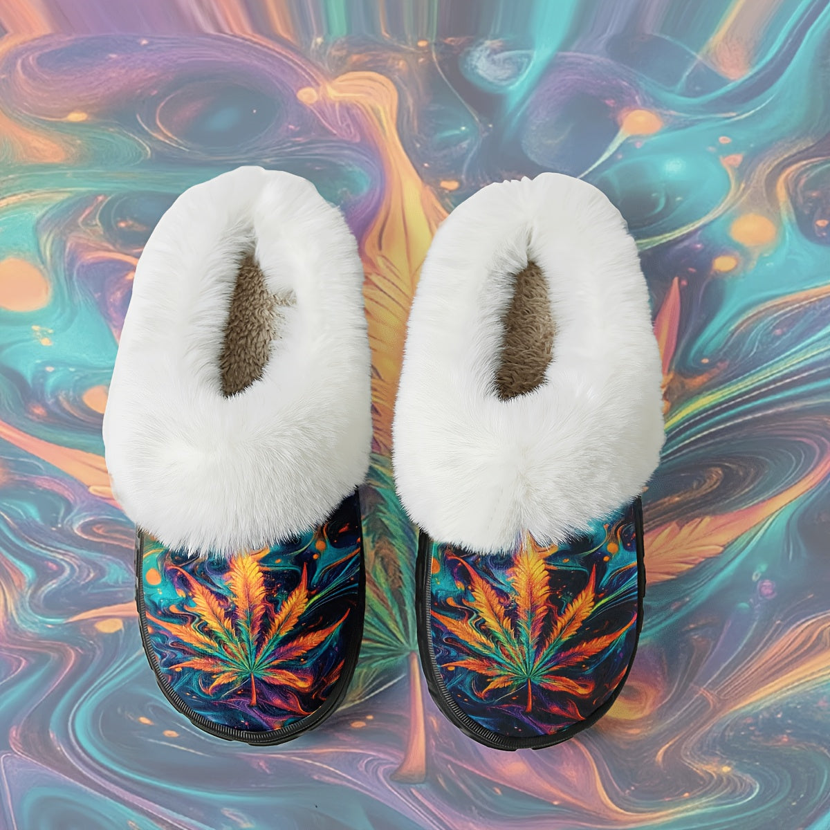 Cozy up in these Psychedelic Leaf Art plush velvet slippers — soft, warm slip-ons with a durable non-slip EVA sole. Designed for everyday comfort, they resist shedding and make a cheerful gift for holidays or birthdays.