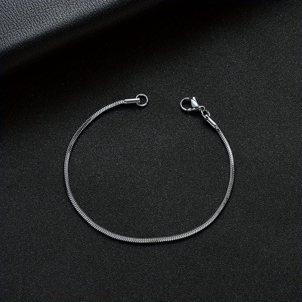Elegant polished 316L stainless steel square snake chain bracelet with a slim 2 mm profile. Durable and tarnish-resistant, this unisex piece adds refined shine to everyday looks and party outfits. Low-maintenance and versatile, it makes a timeless gift for him or her.