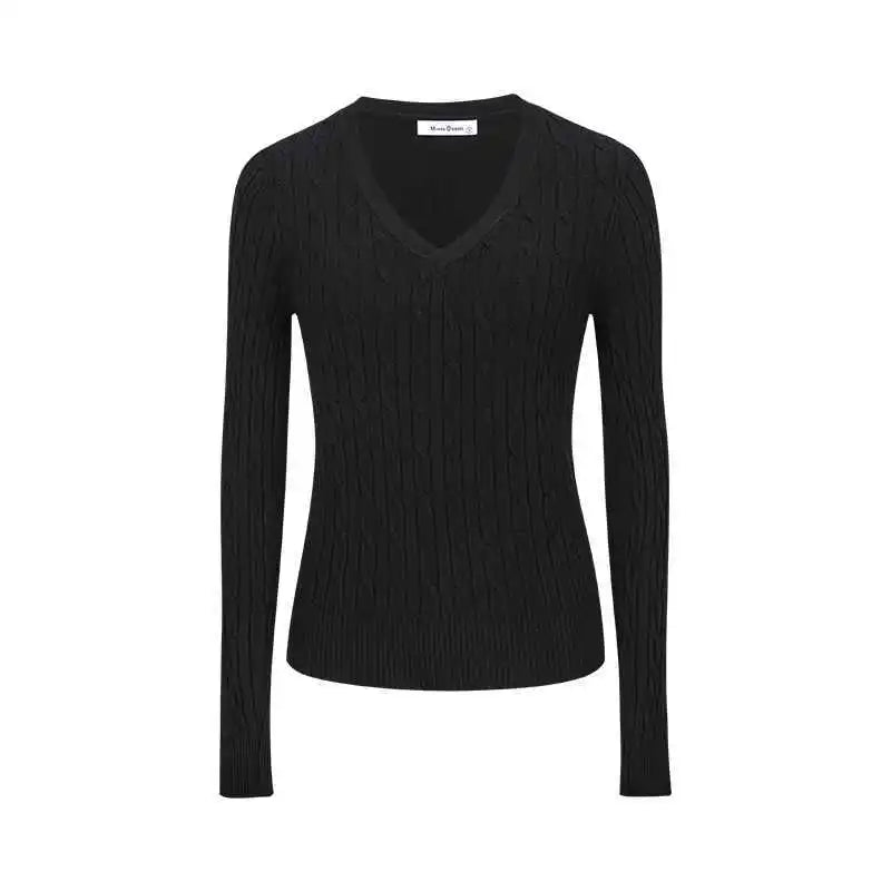 Design & Style: Classic twisted knit V-neck with a pure color finish for a refined, minimalist look