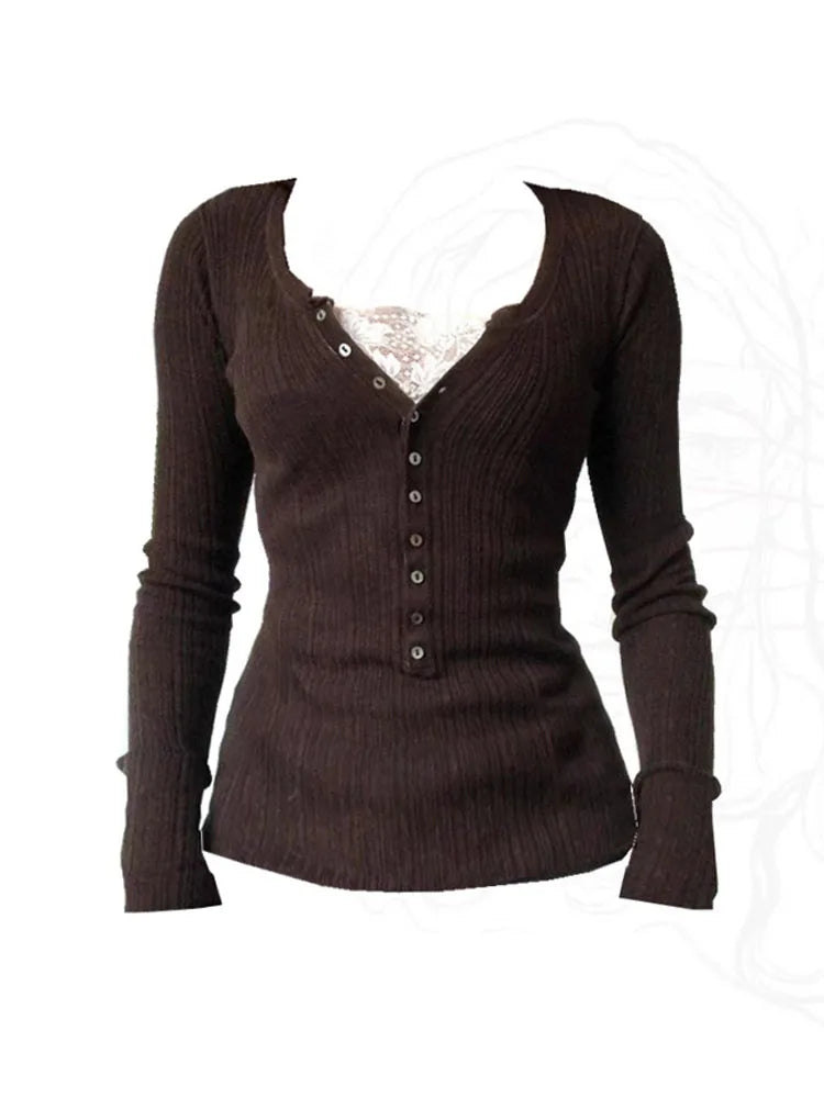 Why you'll love it: Lightweight but warm, this V-neck sweater offers a slim, streamlined silhouette with subtle lace detailing for a feminine touch. Easy to style with jeans, skirts, or layered under coats, it’s a dependable staple for transitional and cold-weather wardrobes.