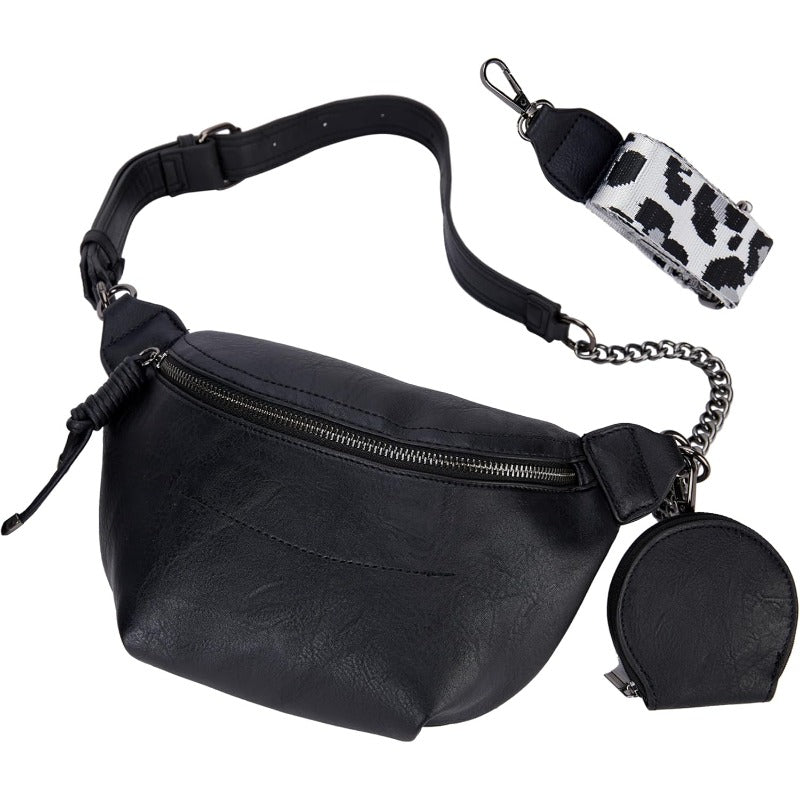 Effortless style meets smart organization in this versatile women's PU leather crossbody belt bag. Lightweight and water-resistant, it converts from waist bag to shoulder, chest, or crossbody purse with two detachable adjustable straps and a chain detail — perfect for going out, travel, and everyday use.