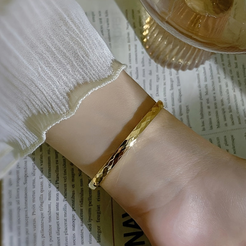 Timeless. This elegant 18K gold-plated open cuff bangle is crafted from durable 316 stainless steel for lasting shine and everyday wear. The minimalist vintage-luxury design is versatile for daily outfits...