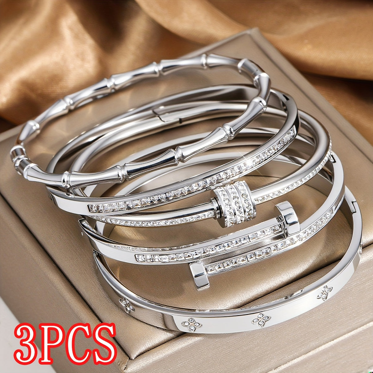 3-Pack Stainless Steel Bracelets, Elegant Stackable Hypoallergenic Wristwear for Daily & Holiday Gifts