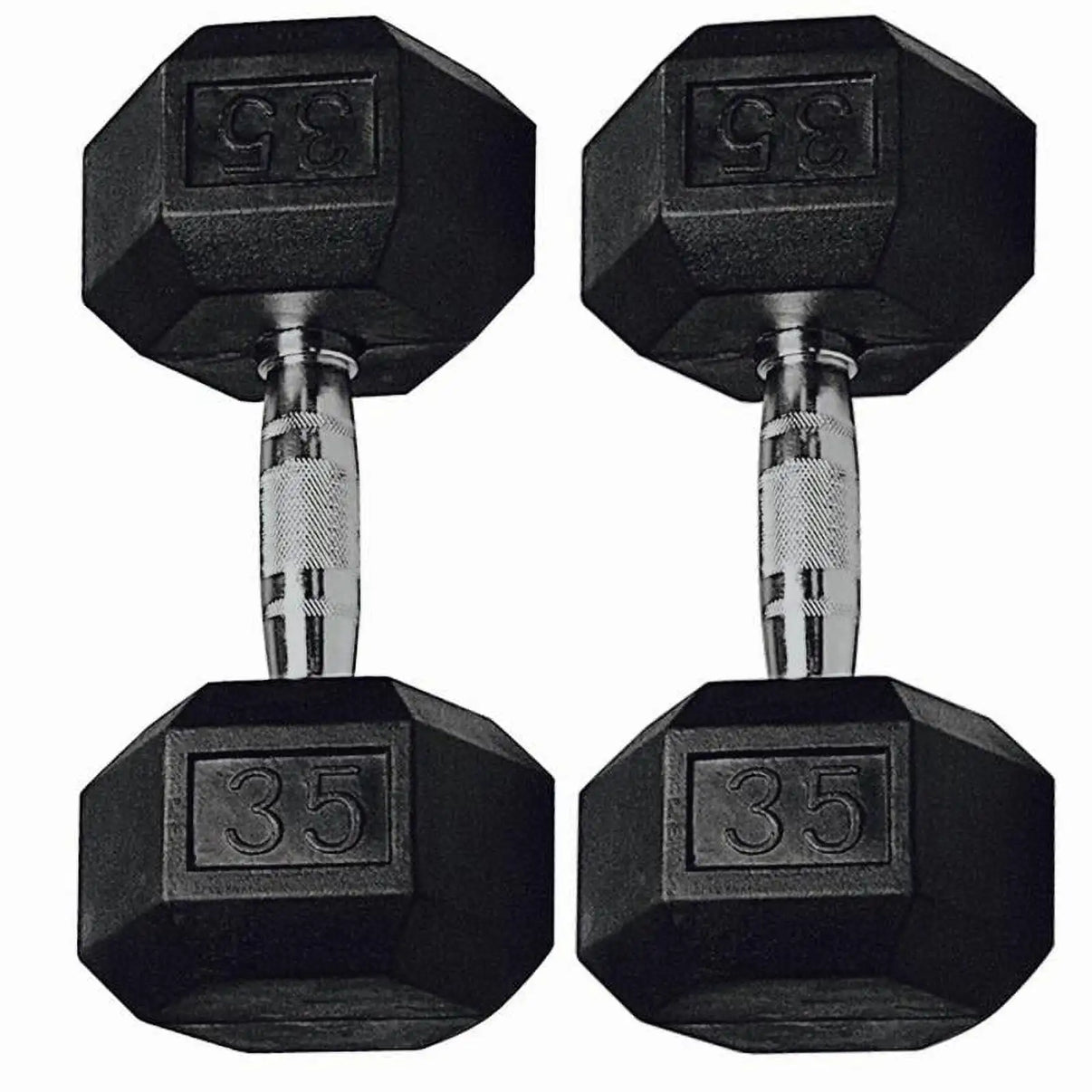 Power up your workouts with this durable 8 lb (3.6 kg) rubber hex dumbbell pair. Rubber-coated heads protect floors and are clearly marked for easy identification, while contoured chrome-plated steel handles provide a comfortable, secure grip for home or commercial strength training and cardio sessions.