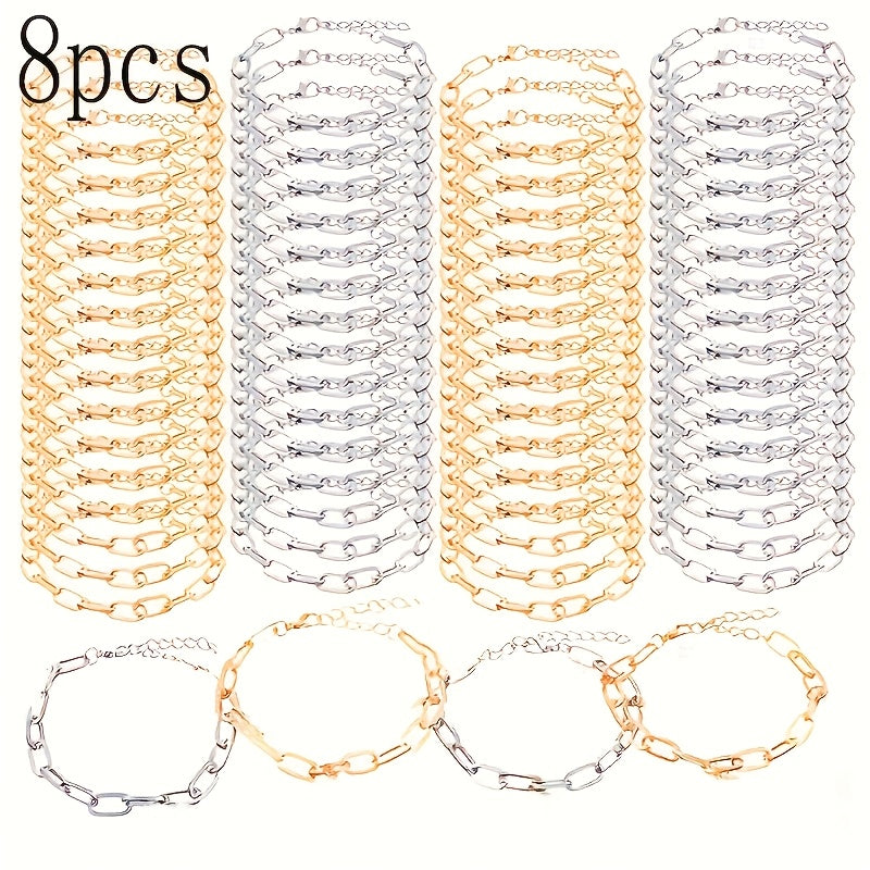 8-Pack Stainless Steel Charm Bracelet Set – 18K Gold-Plated Adjustable Mix & Match Bracelets for Women, Gift-Friendly