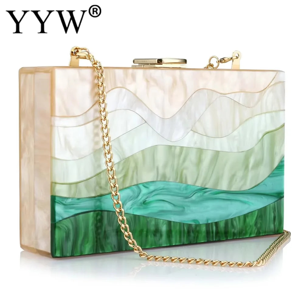 Glamour-ready, this acrylic box clutch with a detachable chain strap adds modern shine to evening, wedding and party looks. The hard-shell geometric design keeps essentials secure while offering versatile carry as a shoulder or crossbody bag for dinners, receptions, and special events.